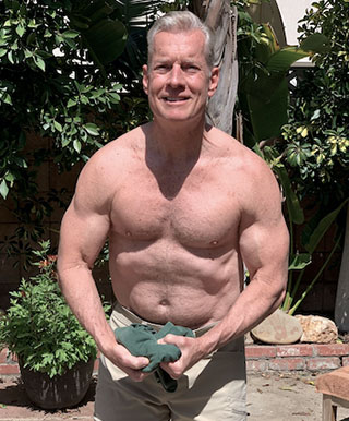 My wife took this photo of me in our backyard six months after using my new ideal-exercise bare-bones home-gym workouts. I was shocked at the progress I had made with these quick, precise workouts.